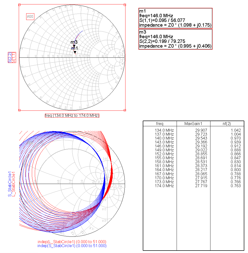 After optimizing the LNA for impedance match, noise factor, gain, and stability, the LNA gives the following performance.